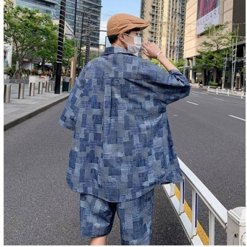 Five-point Shirt Retro Hong Kong Style Trendy Handsome Two-piece Suit