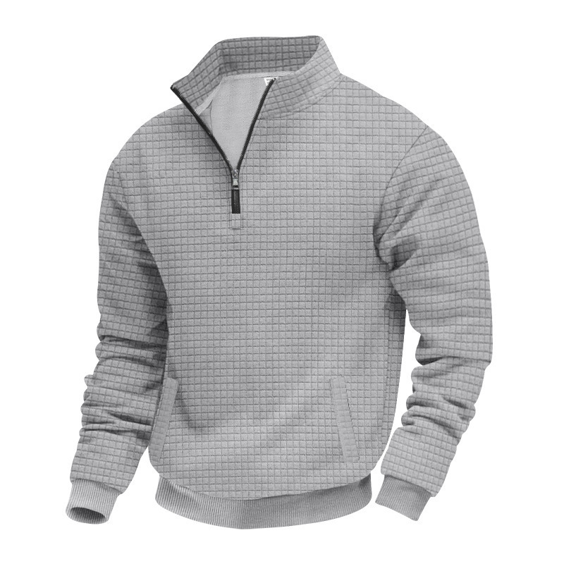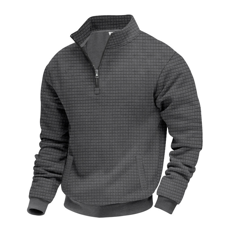 Men’s Sweatshirt Autumn And Winter New Style Stand-up Collar Long Sleeve Small Check