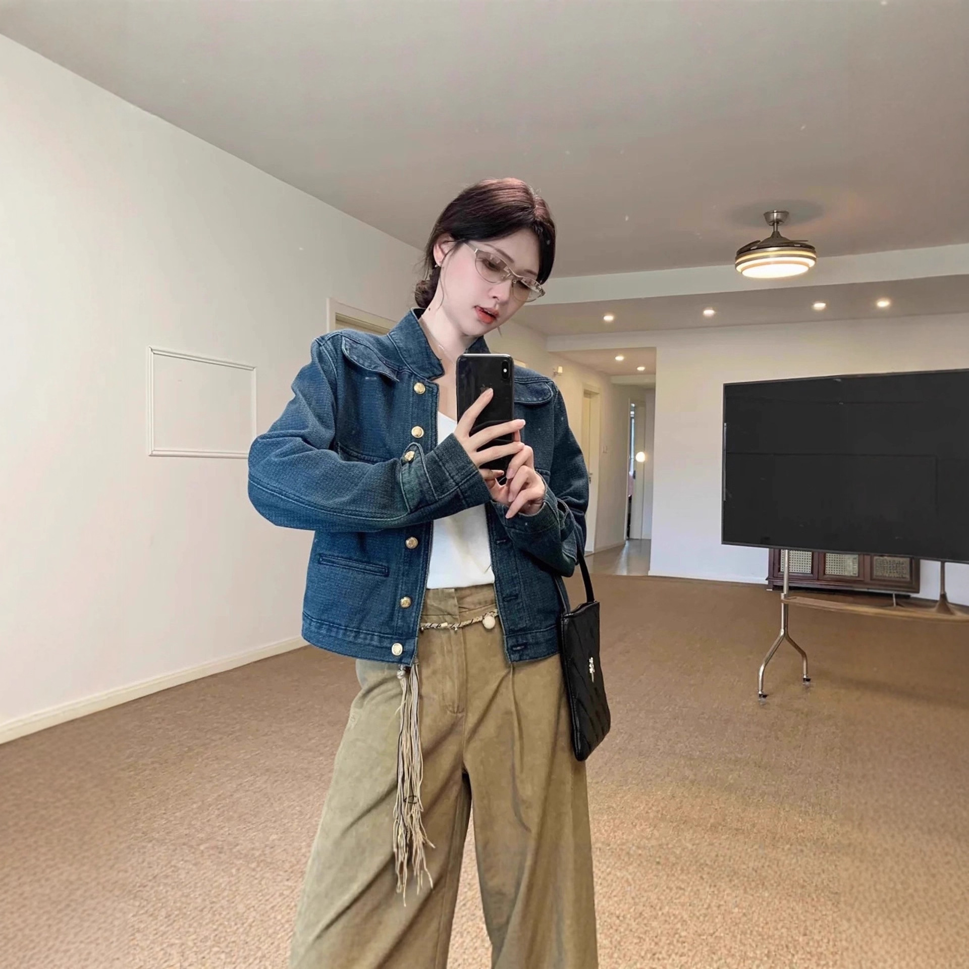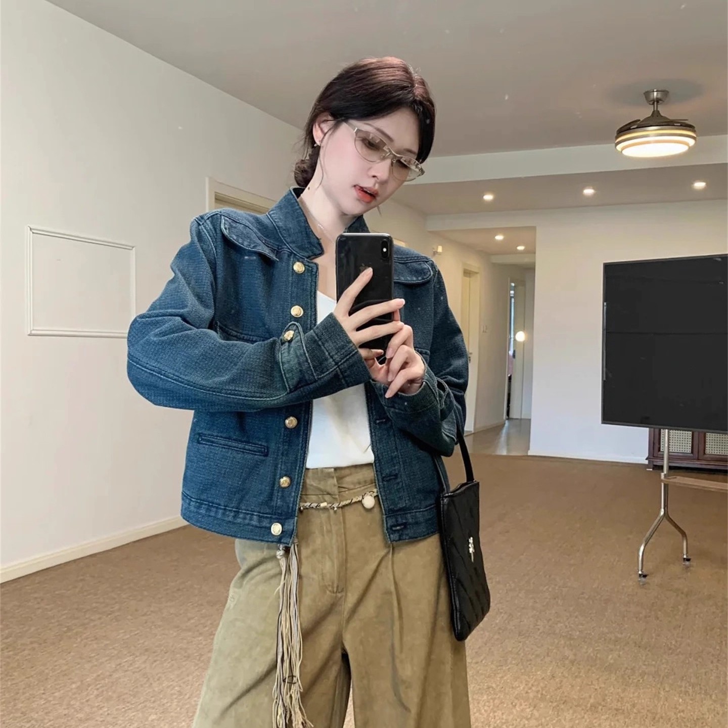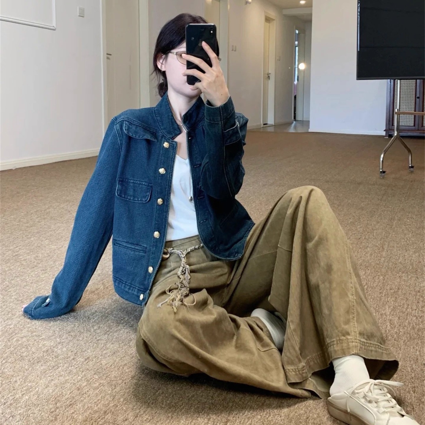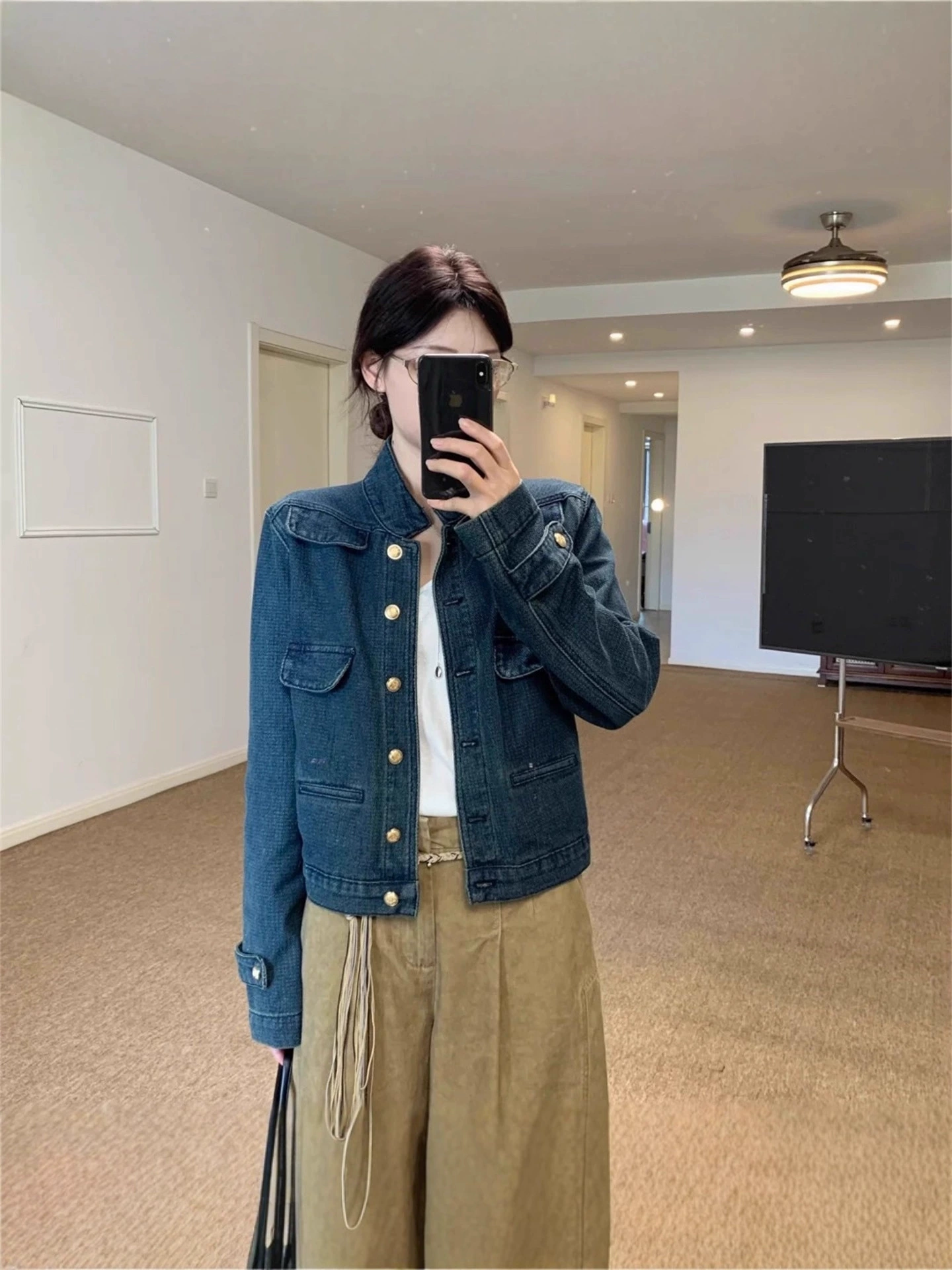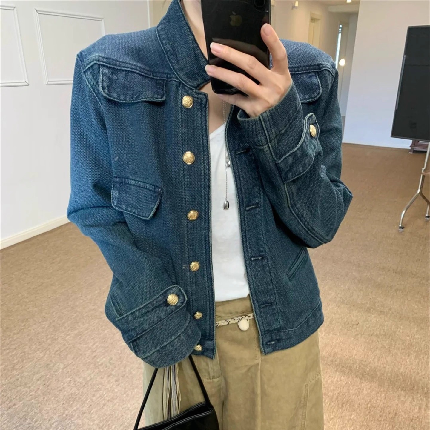 Mid-ancient Stand Collar Women’s Denim Jacket Autumn