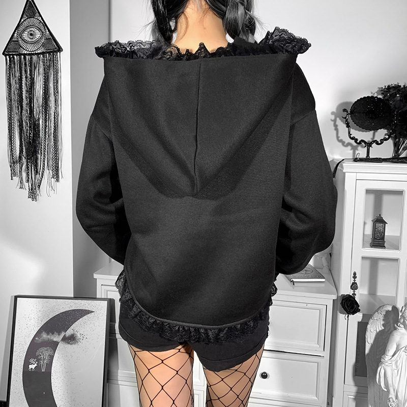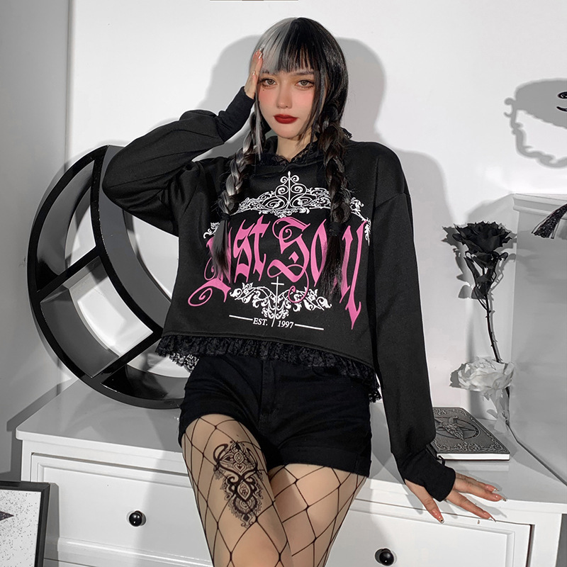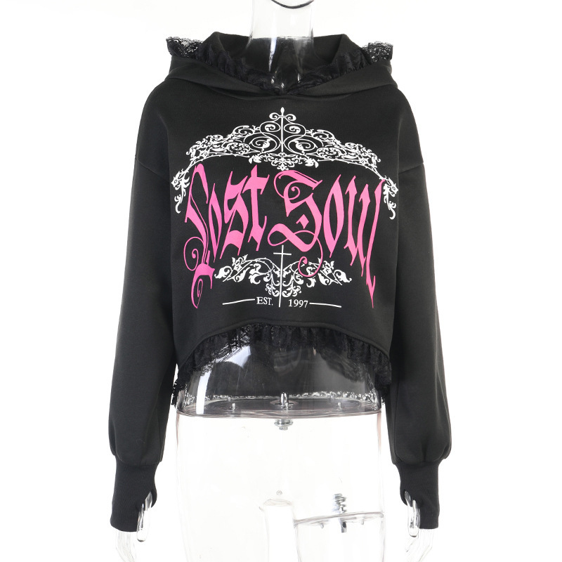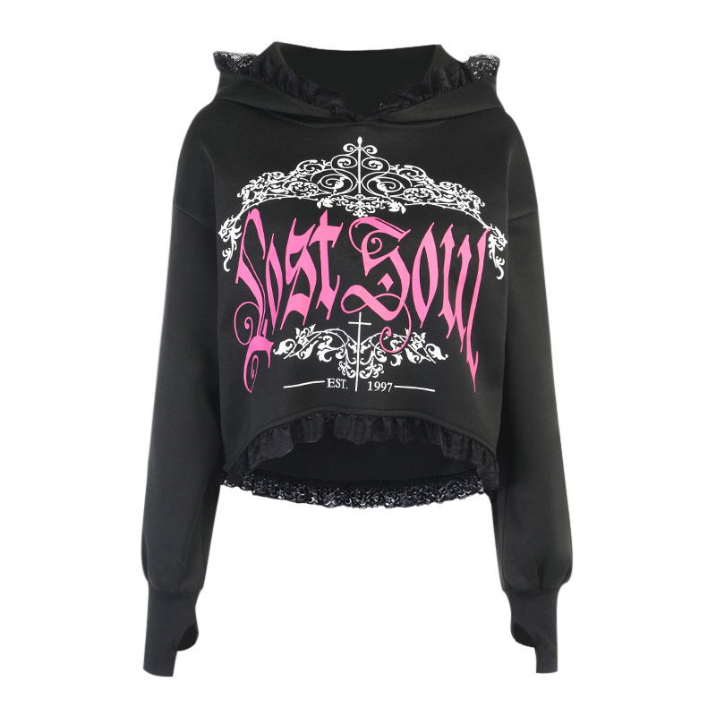 Women’s Dark Style Lace Hooded Trendy Printed Sweatshirt
